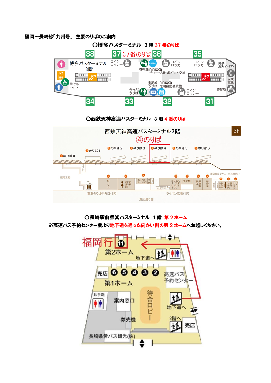 九州号 主要のりばのご案内