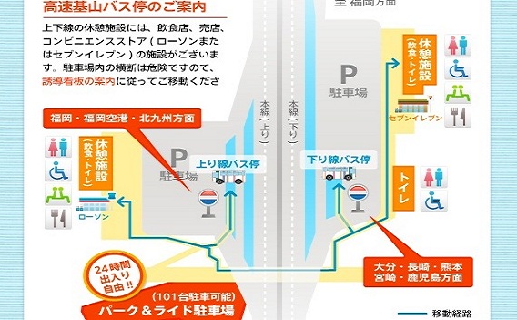 ※上り線(福岡方面)バス停は、九州急行バス(九州号)は降車専用バス停のため、九州号福岡行はご乗車できません。