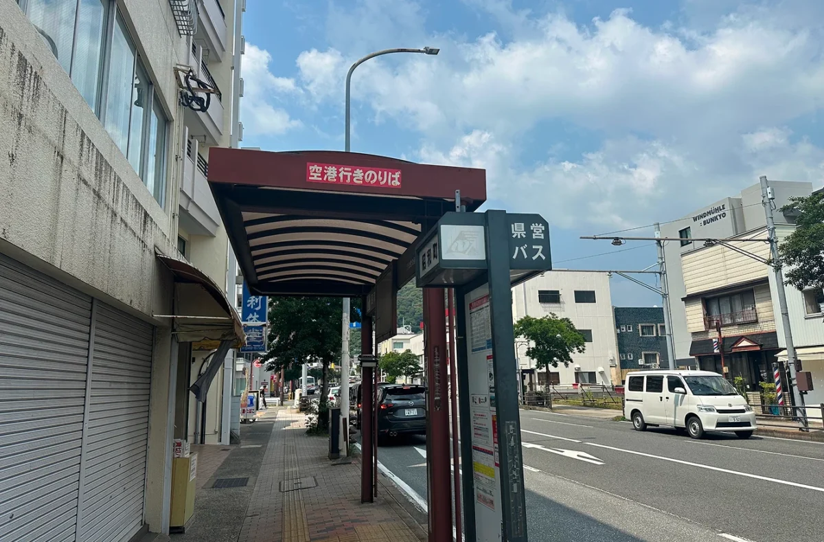 付近に複数のバス停がありますのでご注意ください(福岡行のりばは、ローソン近くにある長崎県営バス空港行バス停です)