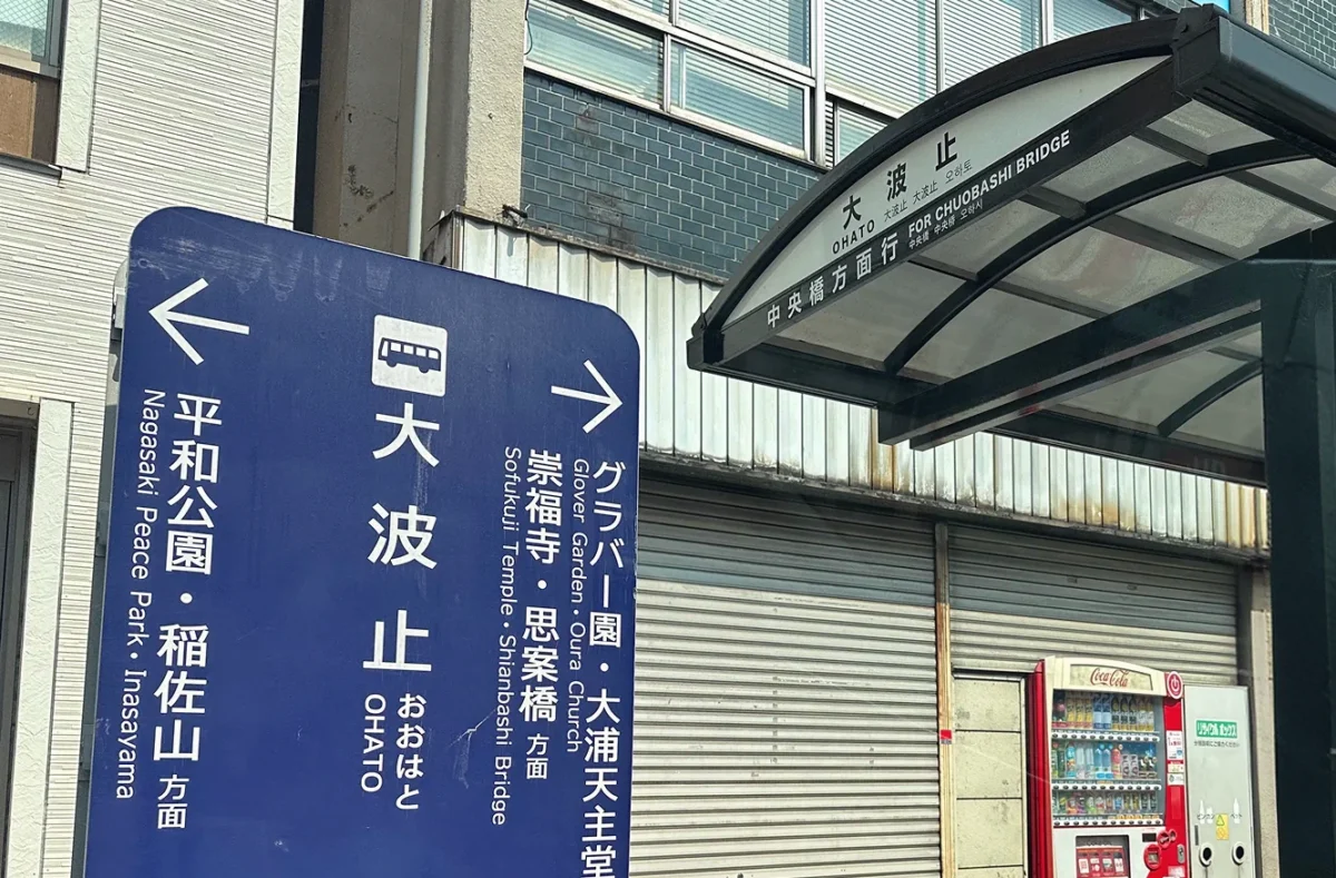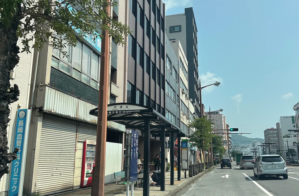 長崎電気軌道「大波止」電停そば。長崎港大波止ターミナル(五島行・伊王島行・軍艦島クルーズ)より徒歩10分。 |