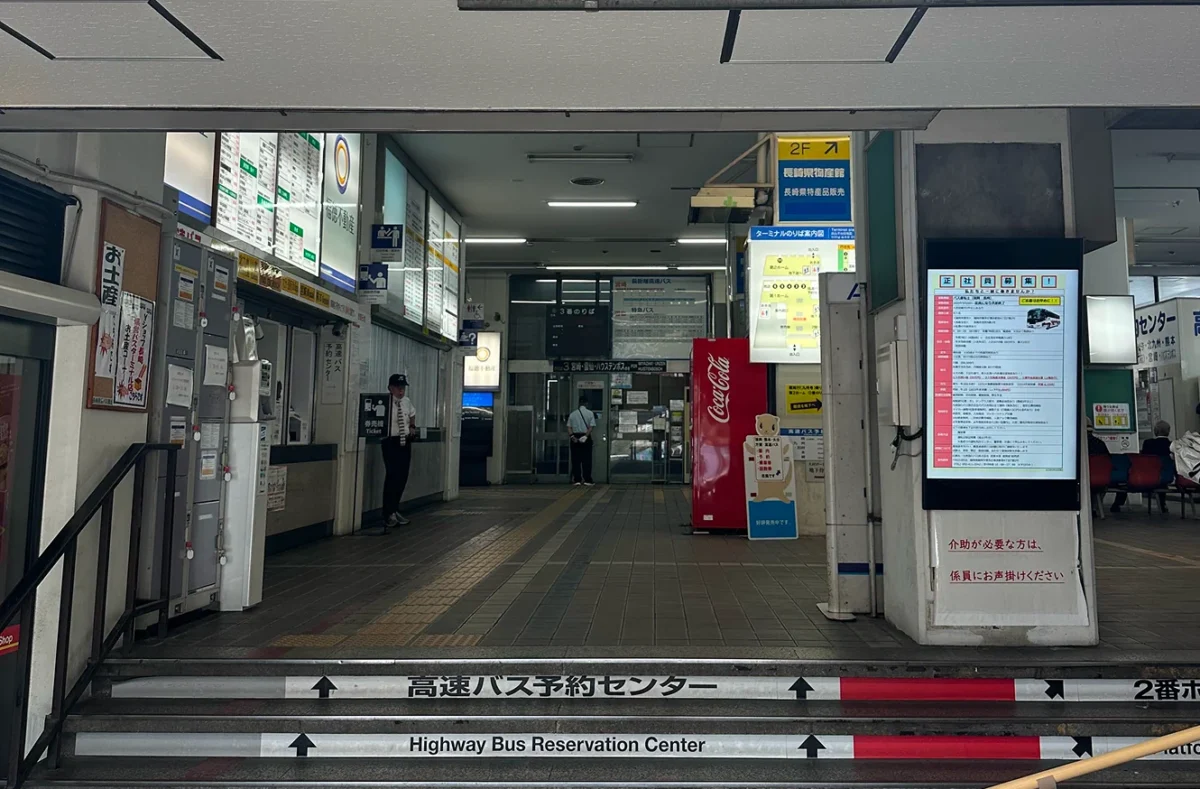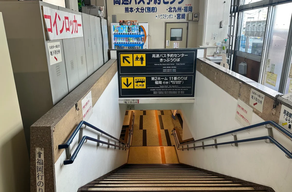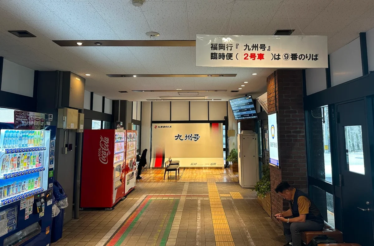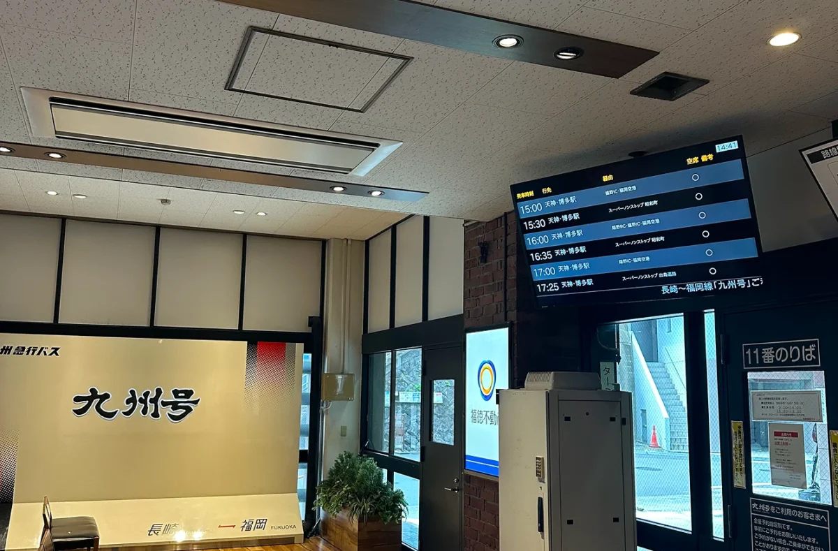 長崎県営バスターミナル内より出発します。(福岡行は地下道を通って、第2ホーム11番のりばからとなります。)